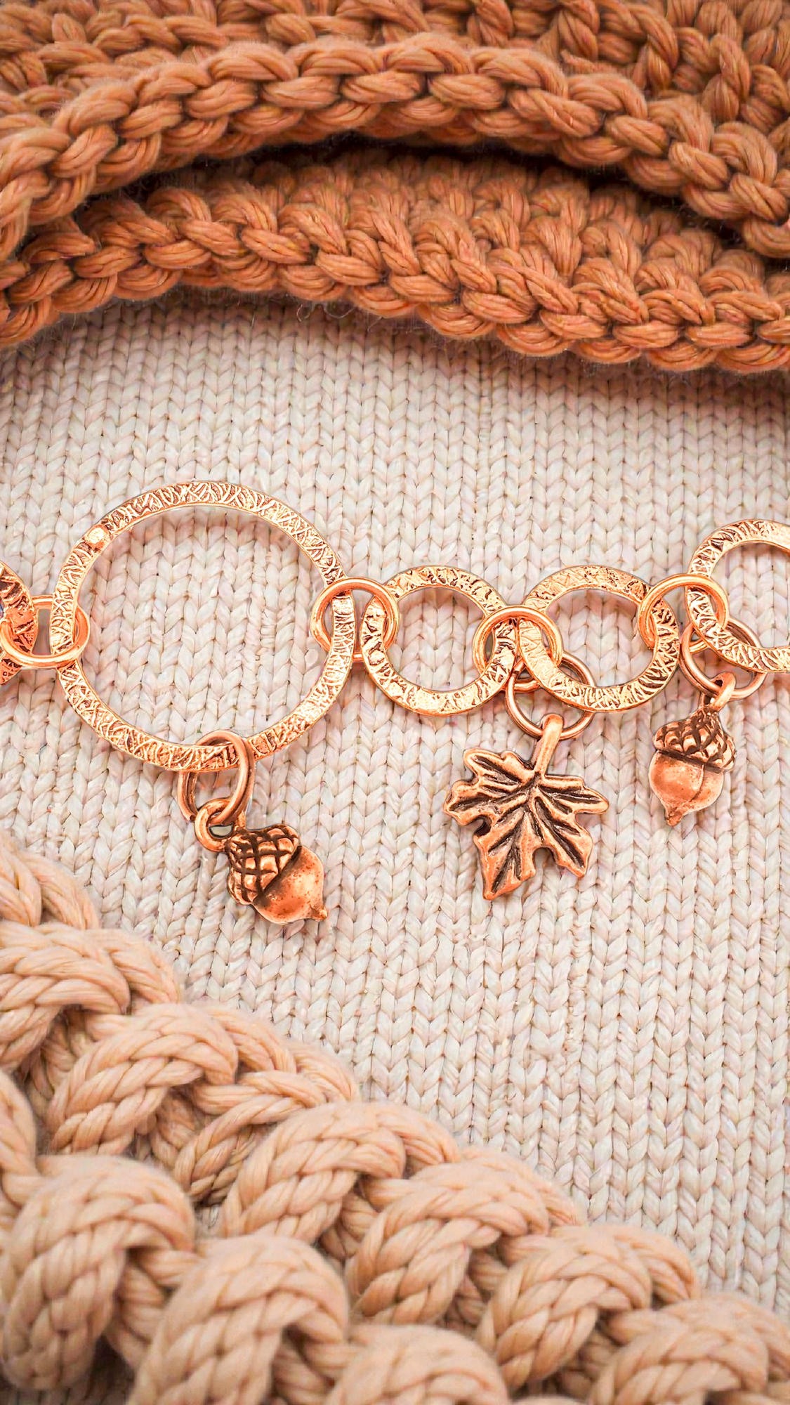 Copper Bracelet with Falling Leaves and Acorn Charms.